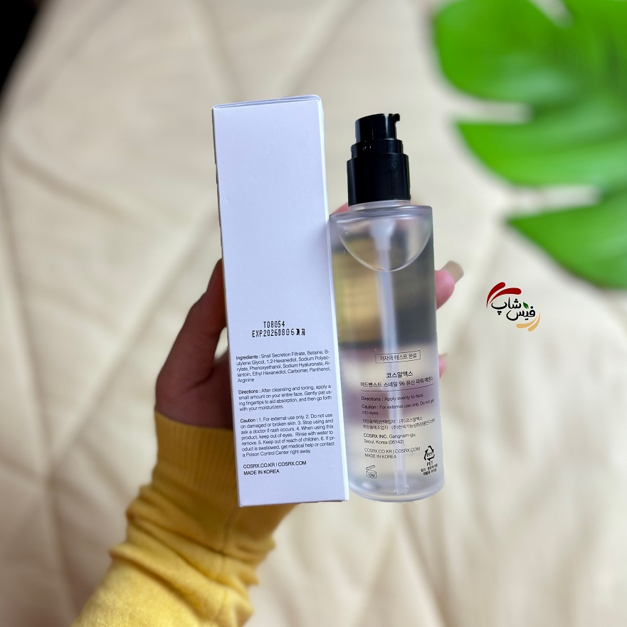 اسنس پاور موسین حلزون Cosrx حاوی مواد مغذی و ترکیبات ضد پیری است. این محصول به جوانسازی و بهبود انعطاف پذیری و خاصیت ارتجاعی پوست کمک می کند. همچنین خواص ضد التهاب و تسکین دهنده داشته و پوست را تمیز و لطیف می کند. در فرمولاسیون اسانس حلزون برند کوزارکس از مواد مضر مانند پارابن، اتانول، سورفکتانت، عطر و رنگ مصنوعی استفاده نشده است. این محصول برای انواع پوست ها مناسب است.
