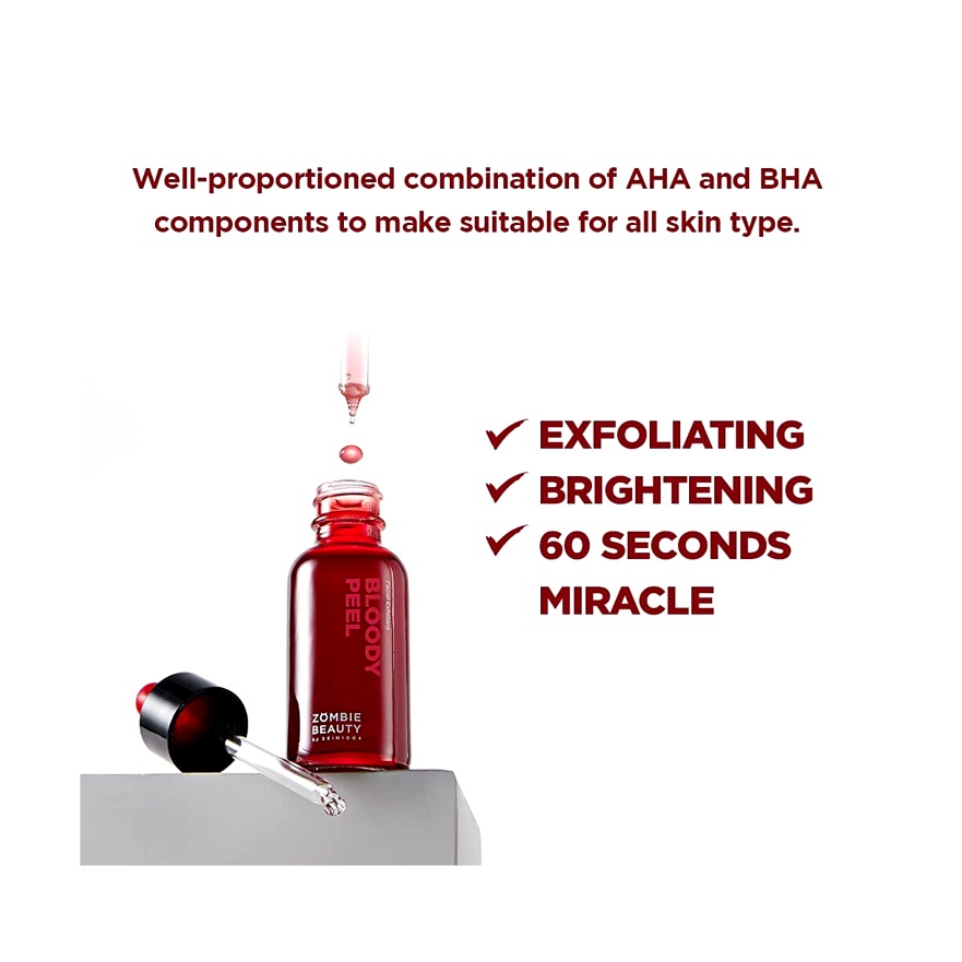 سرم پیلینگ زامبی بیوتی اسکین ۱۰۰۴، یک لایه‌ بردار قوی است که با ترکیبی از اسیدهای میوه و گیاهی، به لایه‌ برداری پوست کمک می‌کند.
