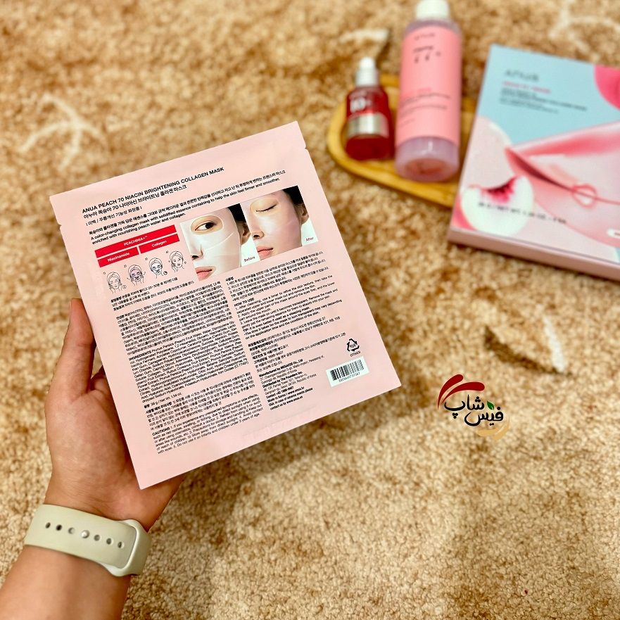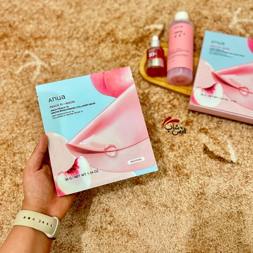 ماسک ورقه ای هلو نیاسینامید آنوا روشن کننده پوست