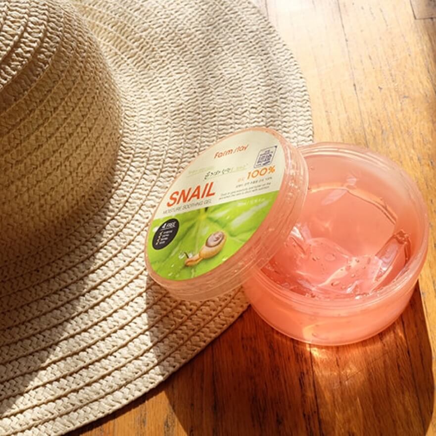 ژل فارم استی حاوی موسین حلزون Farm Stay Moisture Soothing Gel Snail کاملاً پوست را مرطوب، ترمیم، نرم و محافظت می‌کند. این محصول دارای اثر بازسازی کننده قوی است و به ترمیم پوست کدر، فاقد خاصیت ارتجاعی و خشک کمک می‌کند. این ژل بافت سبکی دارد و به سرعت جذب پوست می‌شود بدون اینکه احساس چسبندگی ناخوشایندی به جا بگذارد.