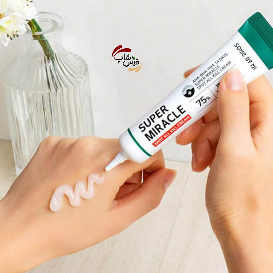 کرم درمان جوش و جای جوش ۱۴ روزه سوپر میراکل سام بای می، یک محصول چند منظوره و حاوی AHA، BHA و PHA است تا با پاکسازی کامل ناخالصیها، پوست را به طور مؤثری شفاف و یکدست سازد.