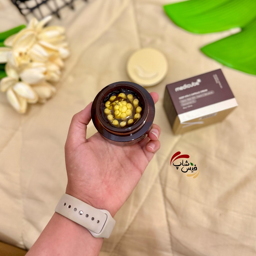 در حالی که برای آبرسانی و کشسانی بیشتر (پوست خشک)، نسبت کپسول را افزایش دهید( ۱ قاشق ژل ۲ عدد کپسول زرد). کرم کپسولی ویتامین سی مدی کیوب را صبح و شب بعد از سرم ها روی صورت و گردن بزنید.